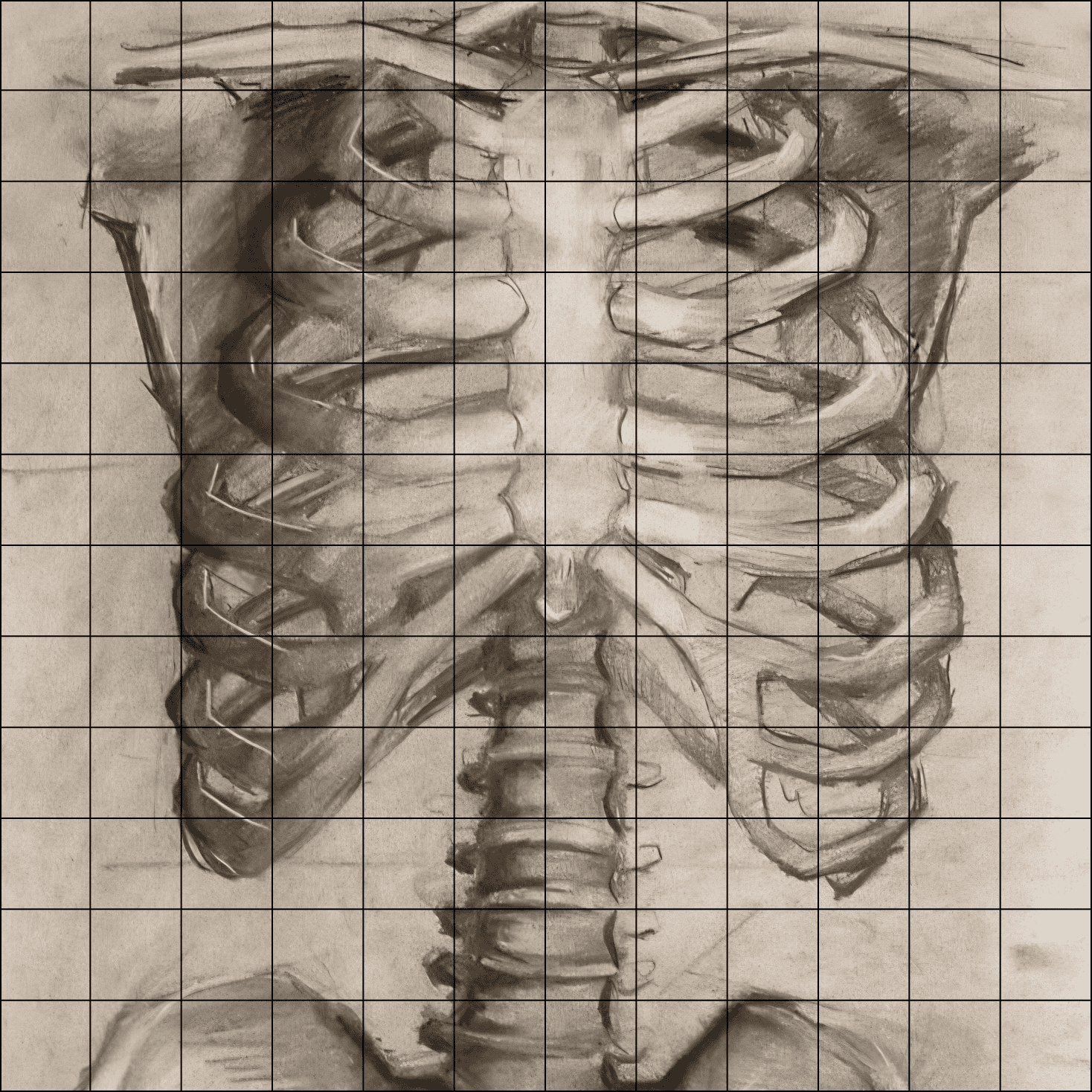 Nothing much to add here. I spent the entire day chalking this bottom portion. Because of the think, smudging chalk, it was very hard to copy the intricate details. I was also having trouble referencing the image and figuring out what rib went where.
